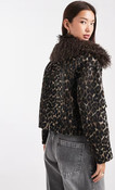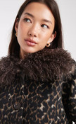 • Brown Faux Fur Trim Leopard Print Jacket