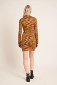 Geo Jacquard Jersey High Neck Ls Mini Dress