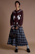 • Pocket Detail Elasticated Waist With Bow Midi Blue Check Skirt
