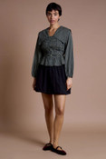 • Stripe Shirred Body Balloon Sleeves Blouse